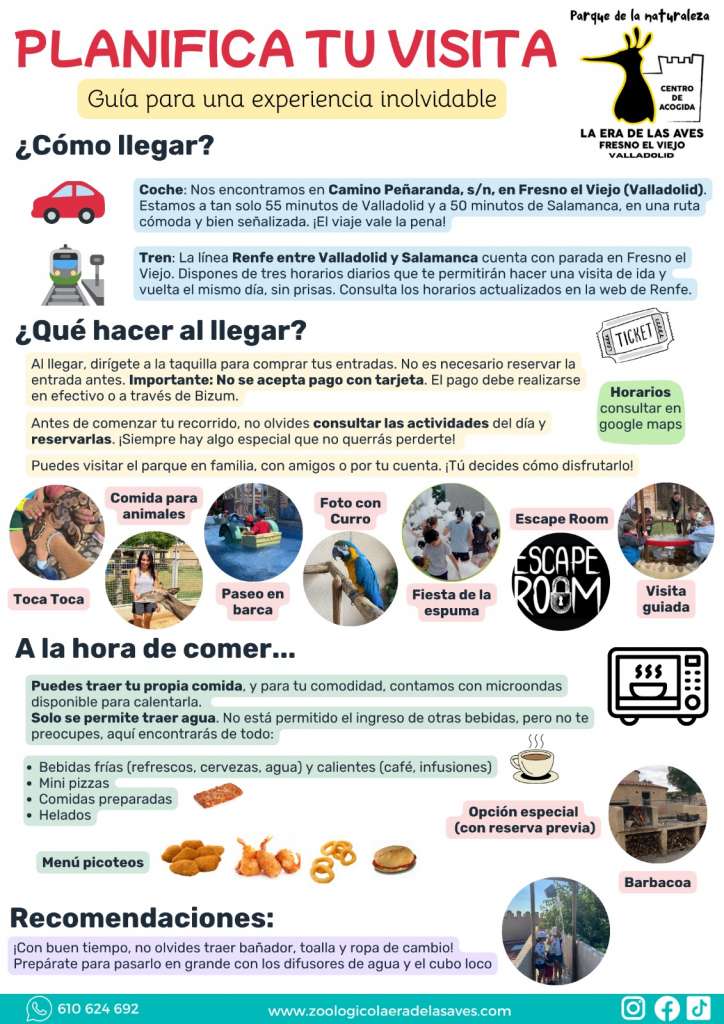 Esperamos que disfrutes de un día maravilloso con nosotros. Para reservas o más información, contáctanos por WhatsApp al teléfono 610624692. ¡Gracias por elegir La Era de las Aves para tu aventura!