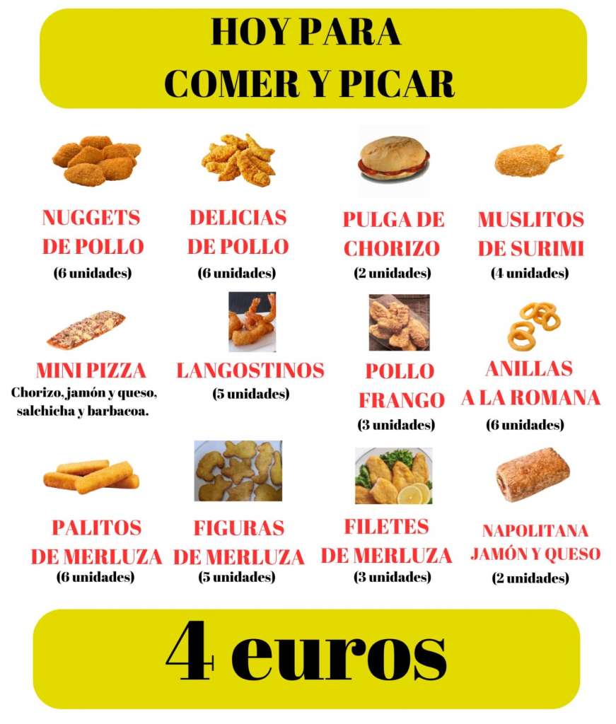 Para comer, ofrecemos diversas opciones como paella (con reserva previa), deliciosas minipizzas, platos precocinados variados y la posibilidad de hacer tu propia barbacoa por 15€ por grupo (máximo 8 personas).